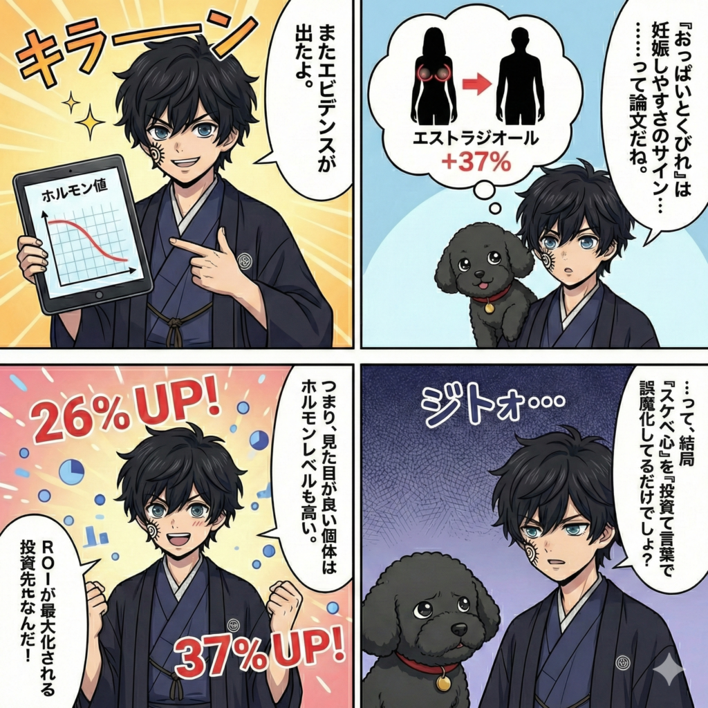 Here, we document that women with higher breast-to-underbreast ratio (large breasts) and women with relatively low WHR (narrow waists) have higher fecundity as assessed by precise measurements of daily levels of 17-beta-oestradiol (E2) and progesterone.