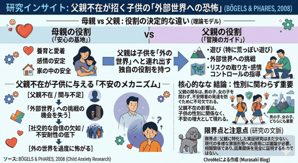 - 父親の愛着が子どもの不安の発症の可能性を低下させる重要な保護因子である可能性を示唆
