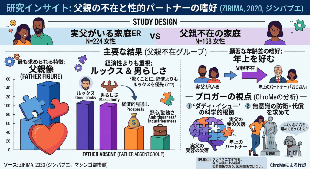 この研究は、早期の父親欠損が、成人後のロマンティックな関係における選択基準を決定づける要因になることを示唆しています。