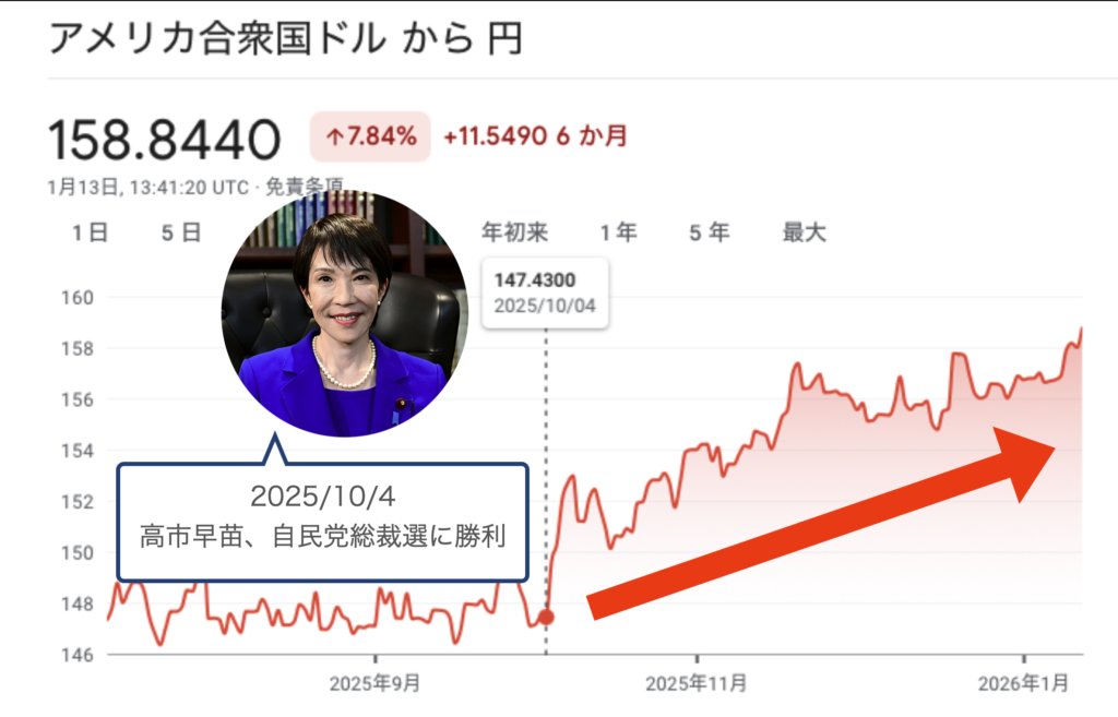 高市早苗が自由民主党総裁線に勝利し、内閣総理大臣となってから、案の定日本円はバンバン売られ 円安がひたすら進行する状態になりました。