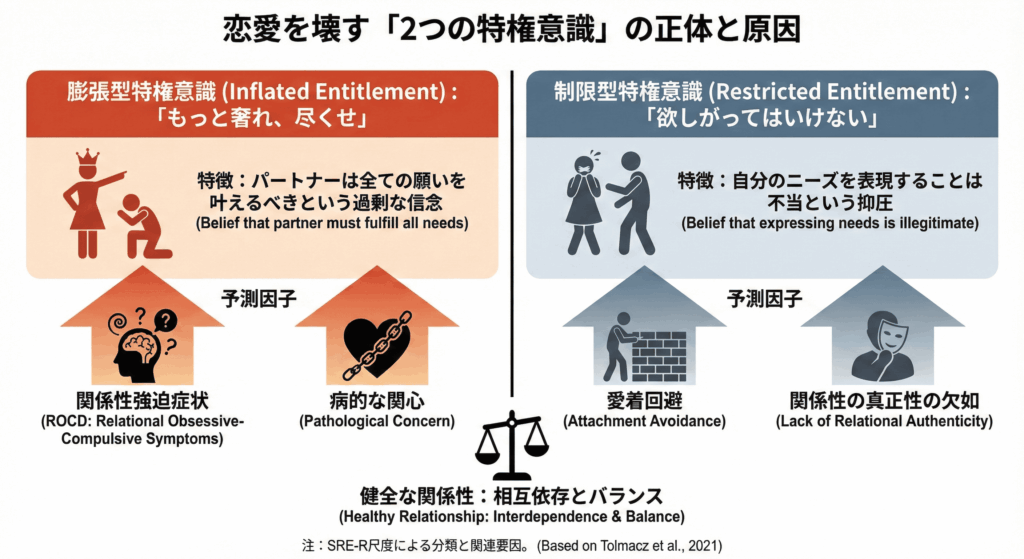 研究チームは、恋愛における特権意識を単なる「ワガママ」としてではなく、以下の2種類の病的な状態に分類しました。