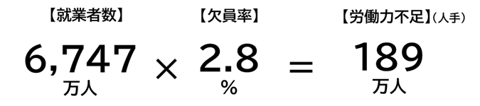 【データ】2023年時点での労働力は189万人不足し、2035年には384万人に拡大する X Facebook はてブ LINE コピー 2025.12.05 2023年 パーソル総合研究所が公表したデータを紹介します。2023年時点での不足している労働力は189万人でした。 引用源 : https://rc.persol-group.co.jp/thinktank/thinktank-column/202410250001/ また、2035年にはその不足は1.85倍に拡大し、384万人の労働力が不足する計算になります。 引用源 : https://rc.persol-group.co.jp/thinktank/spe/roudou2035/